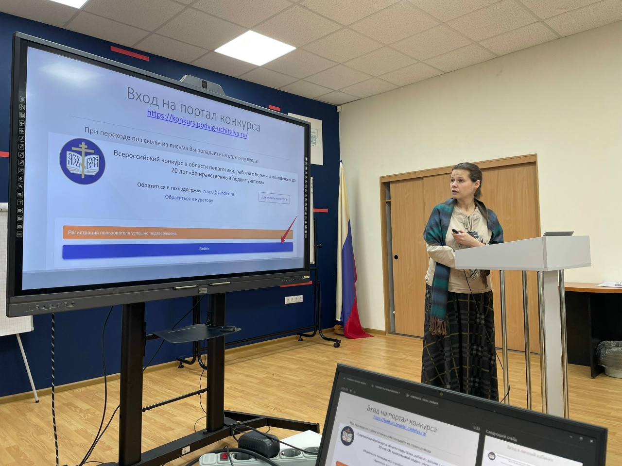 заведующий отделом организационно-методического сопровождения исследовательской и проектной деятельности центра дополнительного образования «Лидер» Светлана Степанова, секретарь отдела религиозного образования и катехизации Псковской епархии, куратор конкурса «За нравственный подвиг учителя» по Псковской митрополии Ольга Дубик