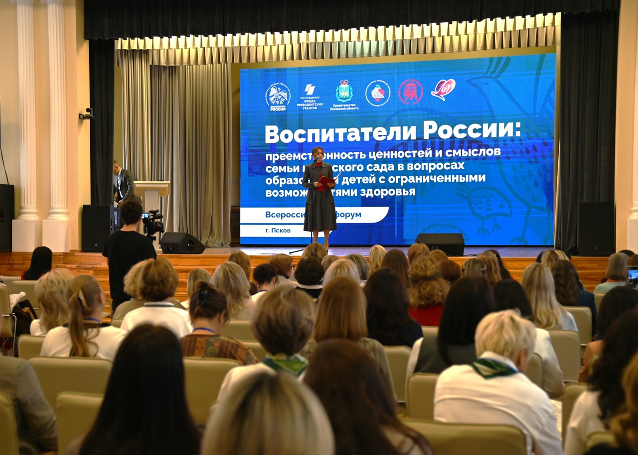 26 сентября в Пскове состоялся Всероссийский форум «Воспитатели России: преемственность ценностей и смыслов семьи и детского сада в вопросах образования детей с ОВЗ». Его участниками стали более 300 представителей системы дошкольного образования со всей страны. Мероприятие стало уникальной возможностью для обмена передовым опытом и формирования единой стратегии поддержки детей с особыми образовательными потребностями.