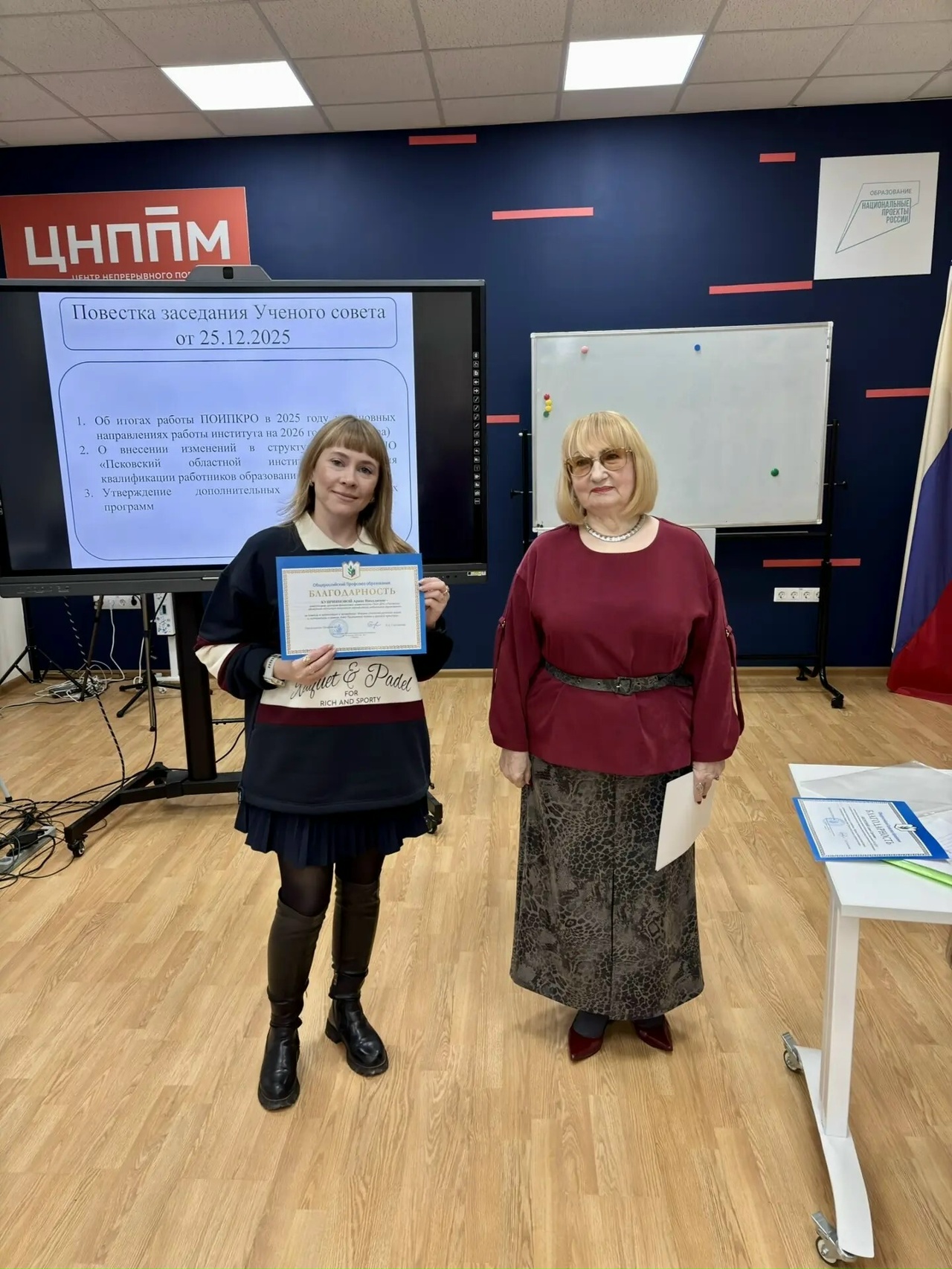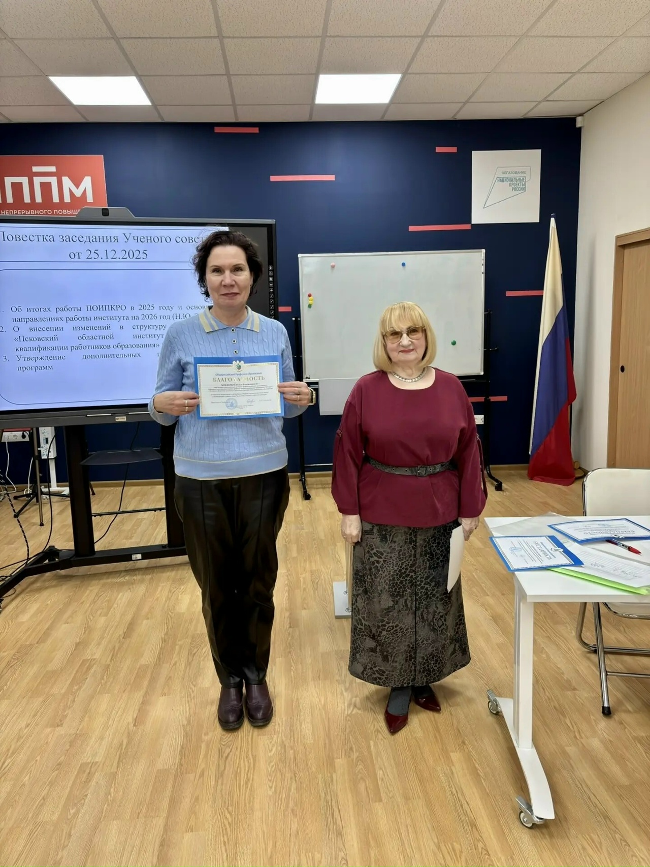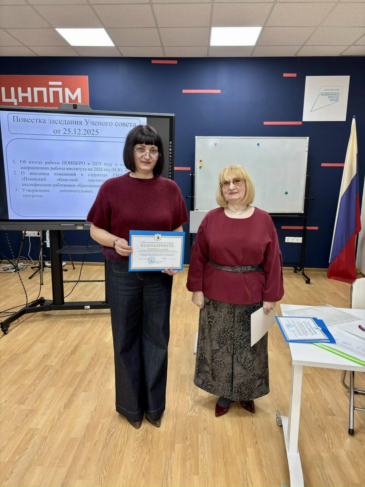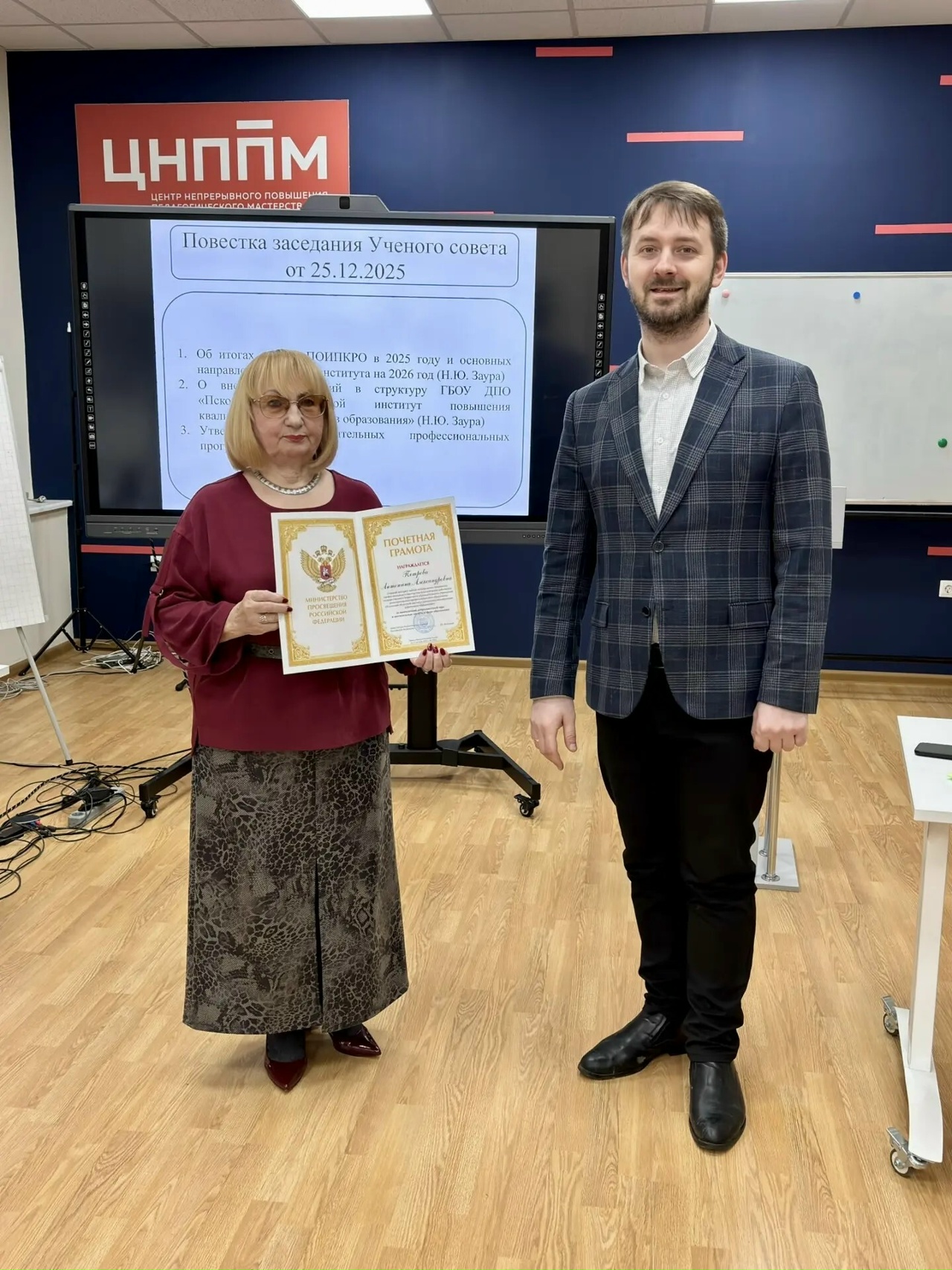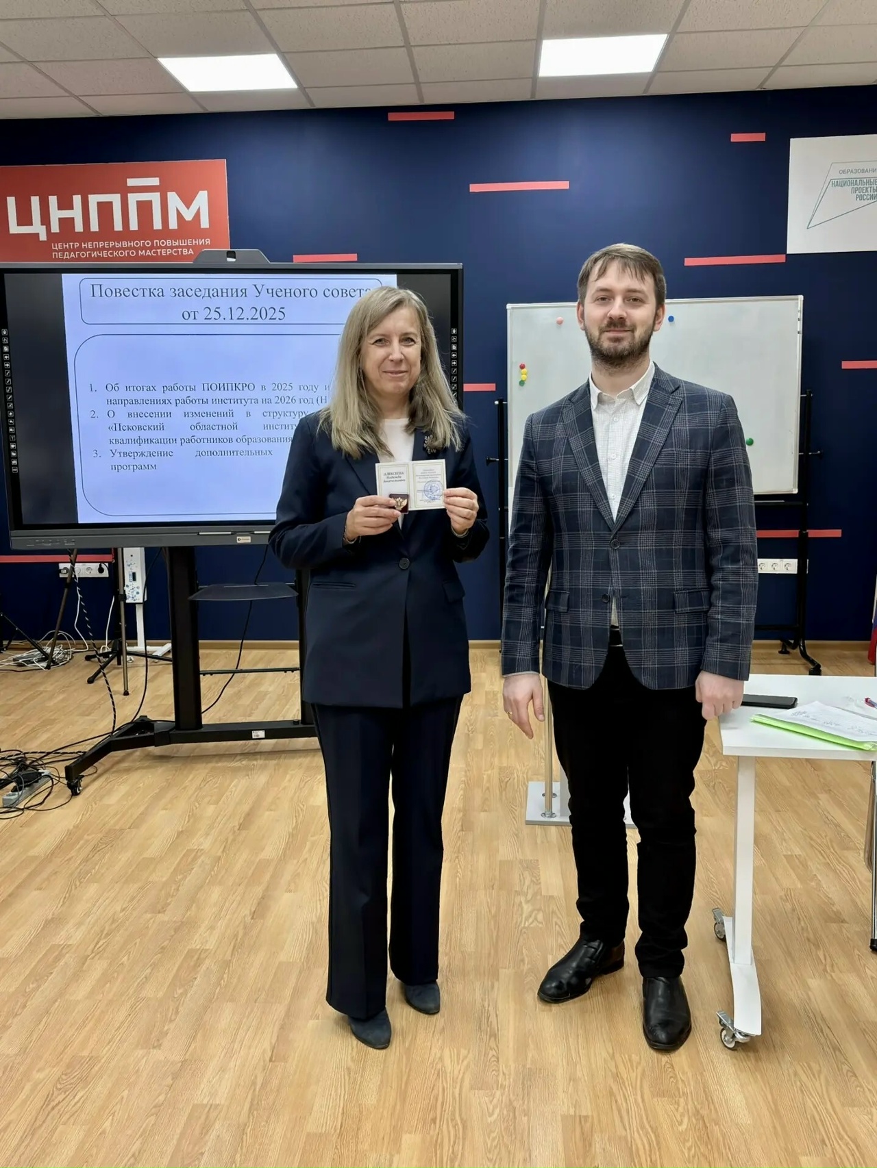 25 декабря начальник отдела региональной политики Министерства образования Псковской области Андрей Ниневский вручил сотрудникам ПОИПКРО ведомственные награды.