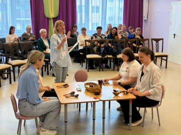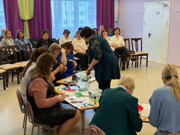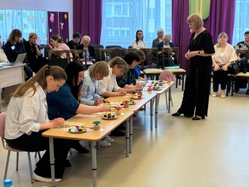 Участники конкурса показывали мастер-классы на разные темы: псковская роспись, традиции народов России, золотая ложка России, игры на формирование основ финансовой грамотности, экологические игры с использованием "Фиолетового леса" В.В. Воскобовича.